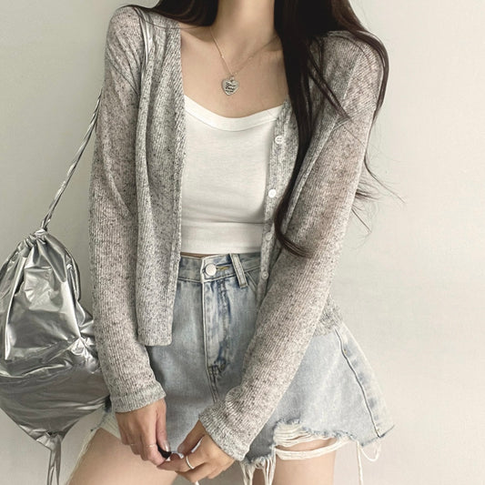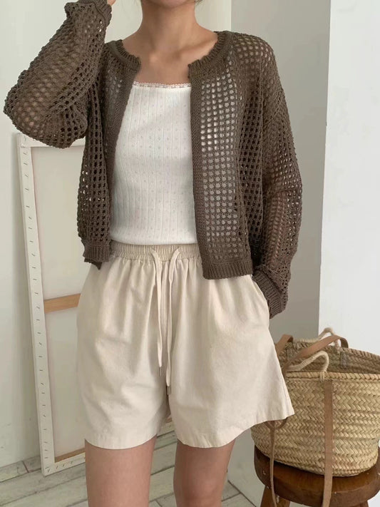 韓國丨鏤空格紋針織外套