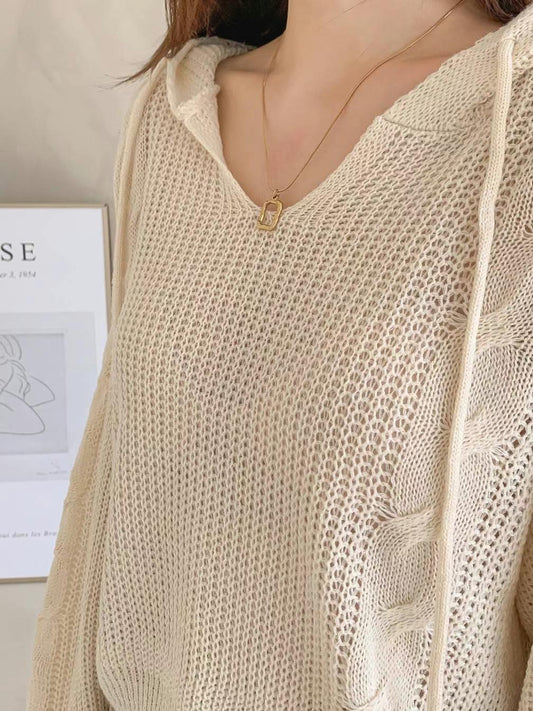 韓國丨抽繩連帽薄針織