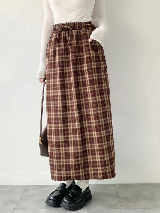 韓國丨全橡筋腰格紋裙