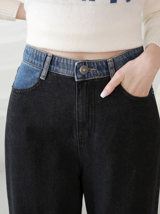 韓國丨雙色寬牛仔褲(內橡筋腰)