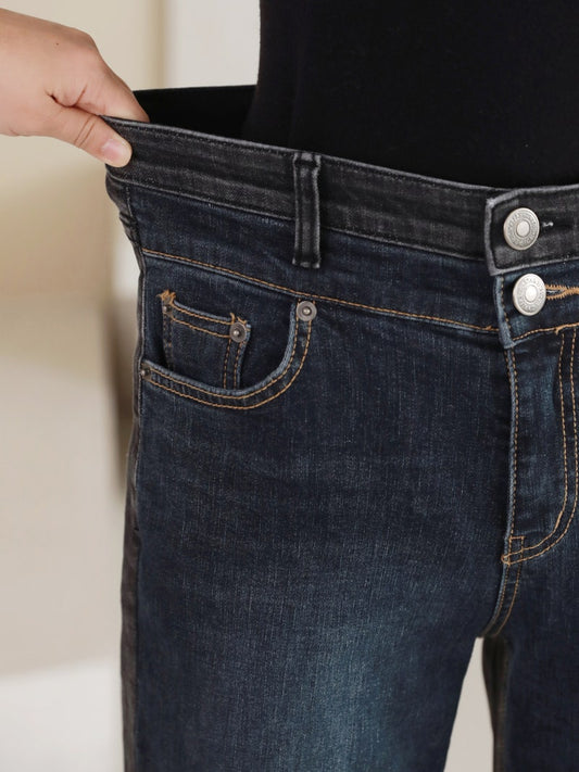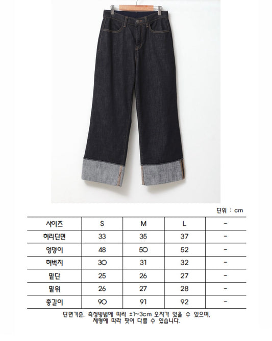 韓國丨內絨半寬牛仔褲