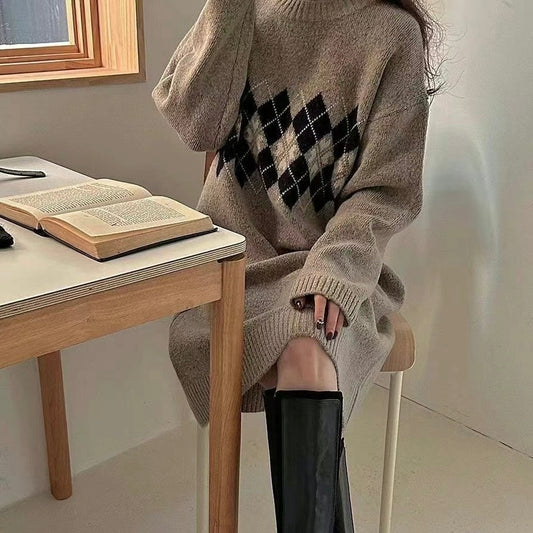 韓國丨撞色菱格針織OPS