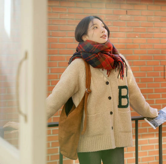 韓國丨字母鈕扣針織外套