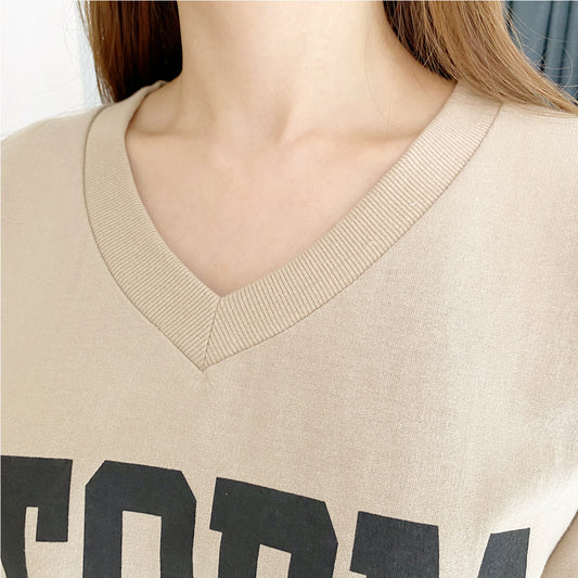 韓國丨V領純棉字母TOP
