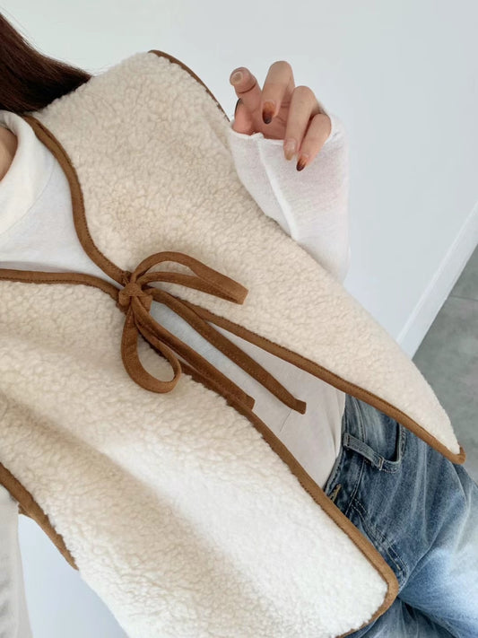 韓國丨羊羔毛綁帶背心