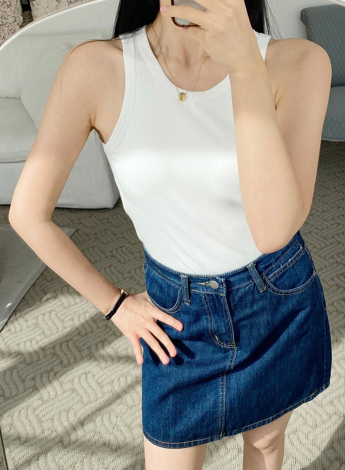 韓國丨純色直紋背心(連胸墊)