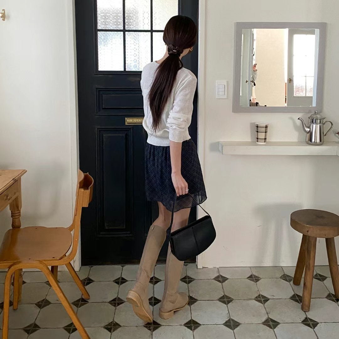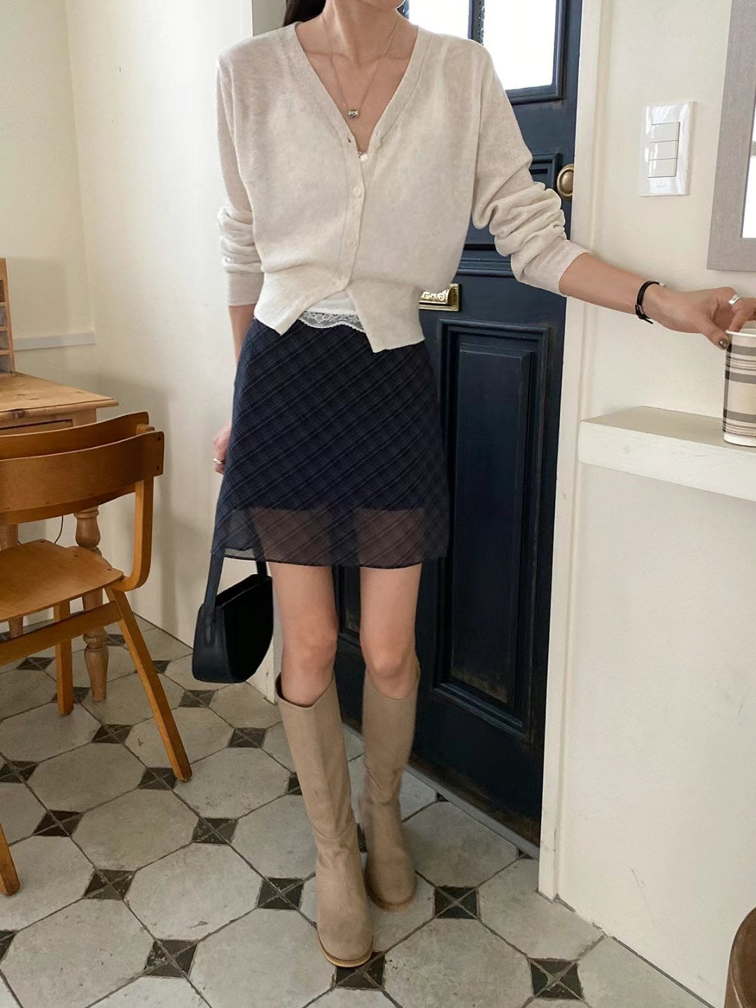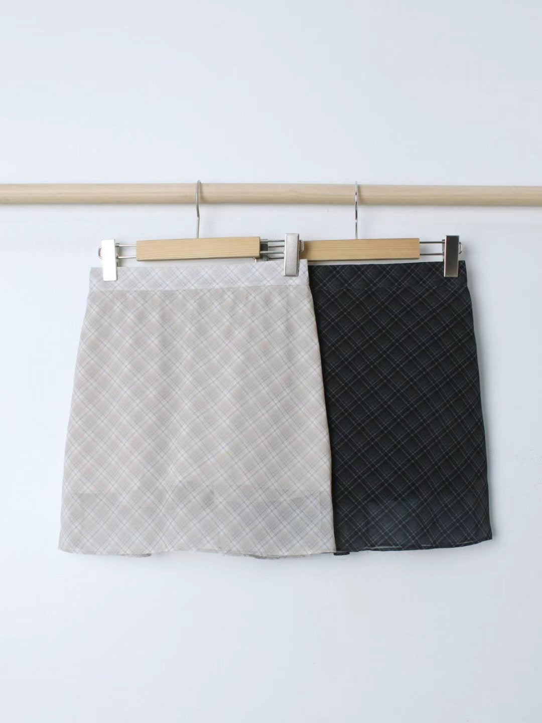 Share Link ♡ 韓國丨後鬆緊腰格紋SK