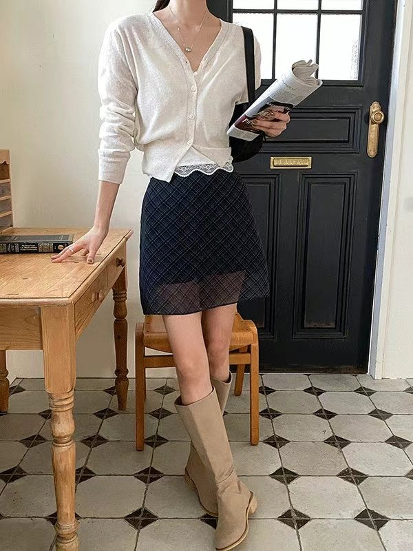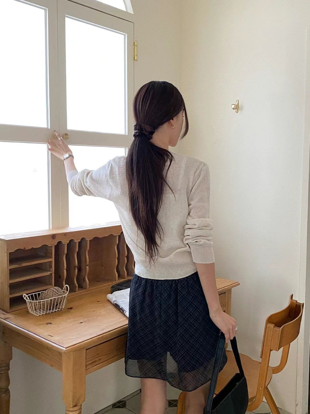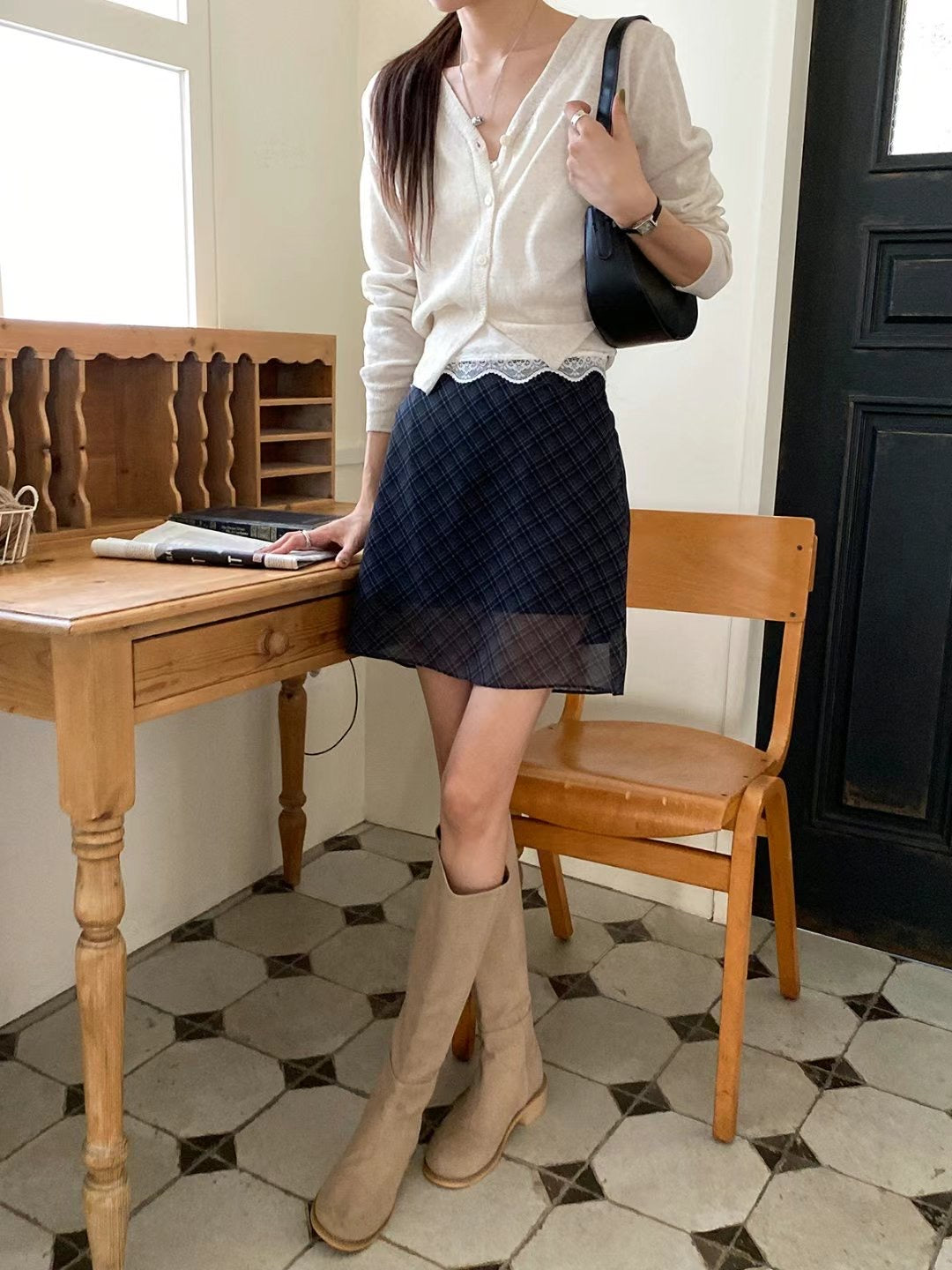 Share Link ♡ 韓國丨後鬆緊腰格紋SK