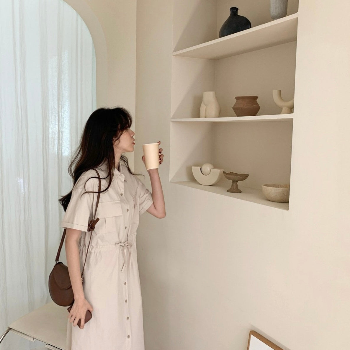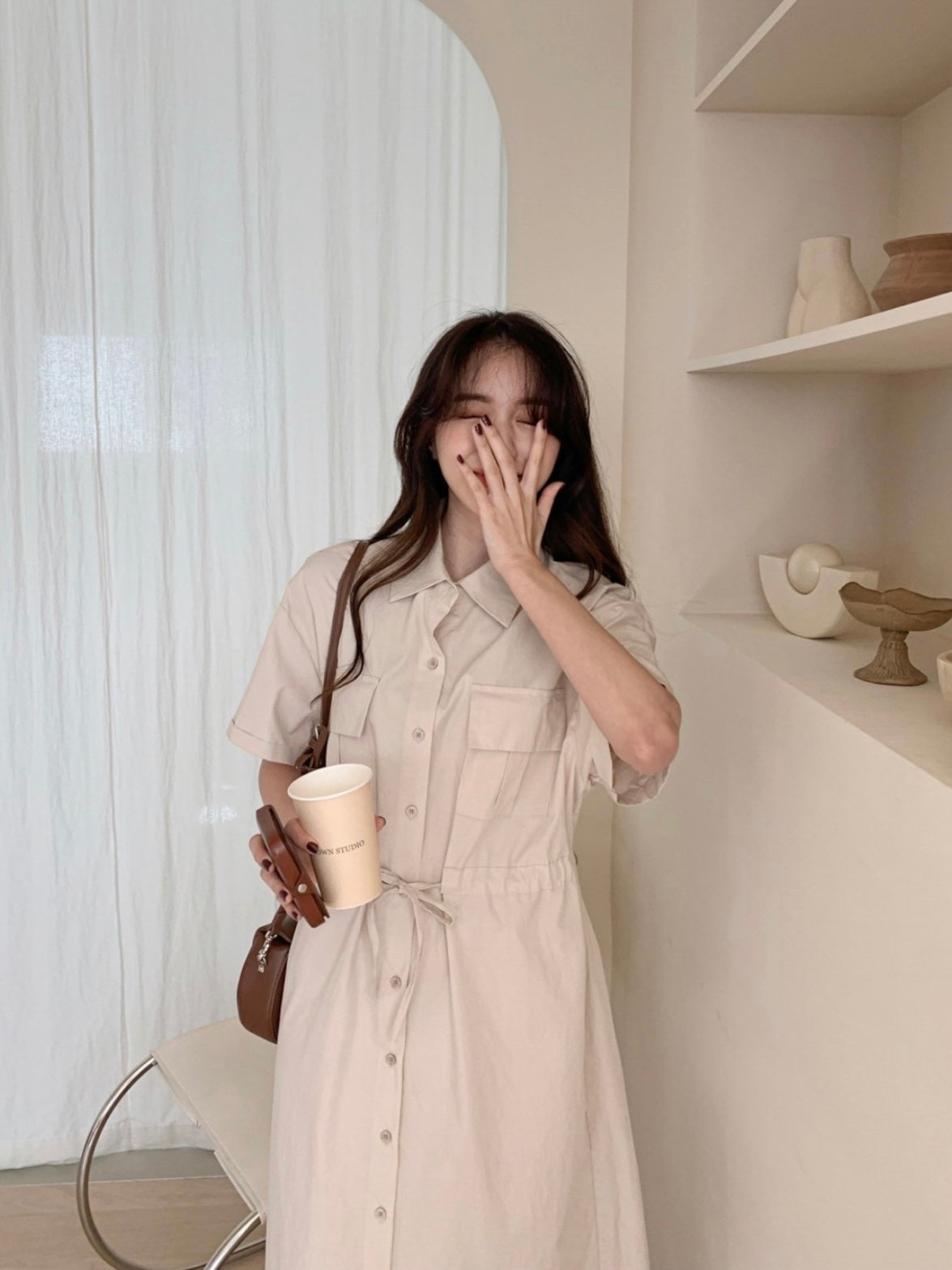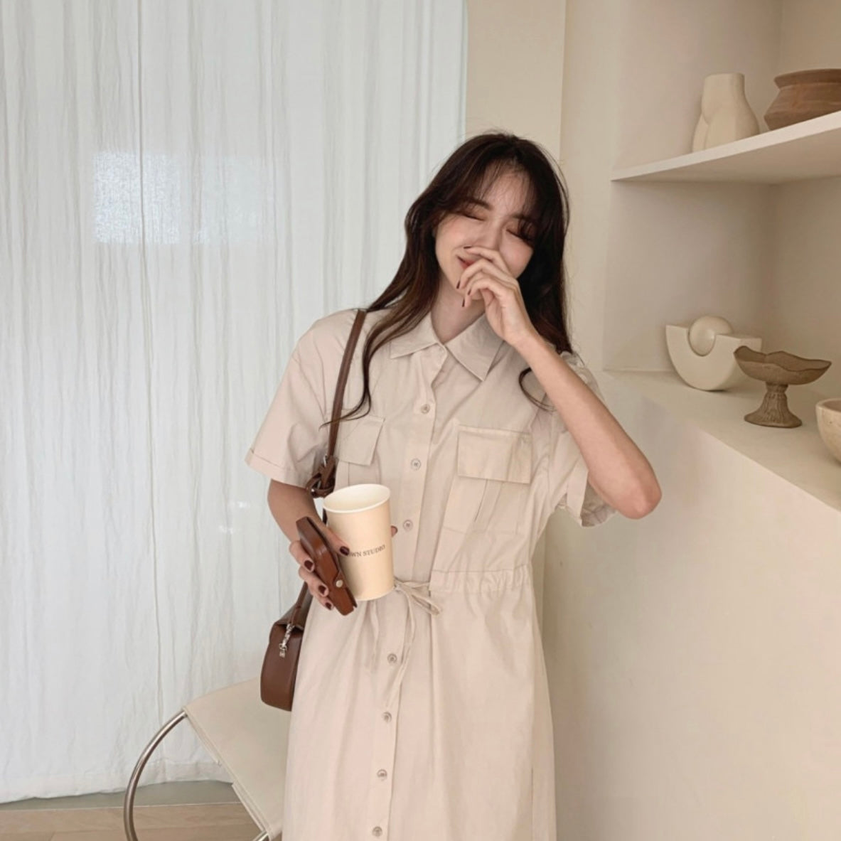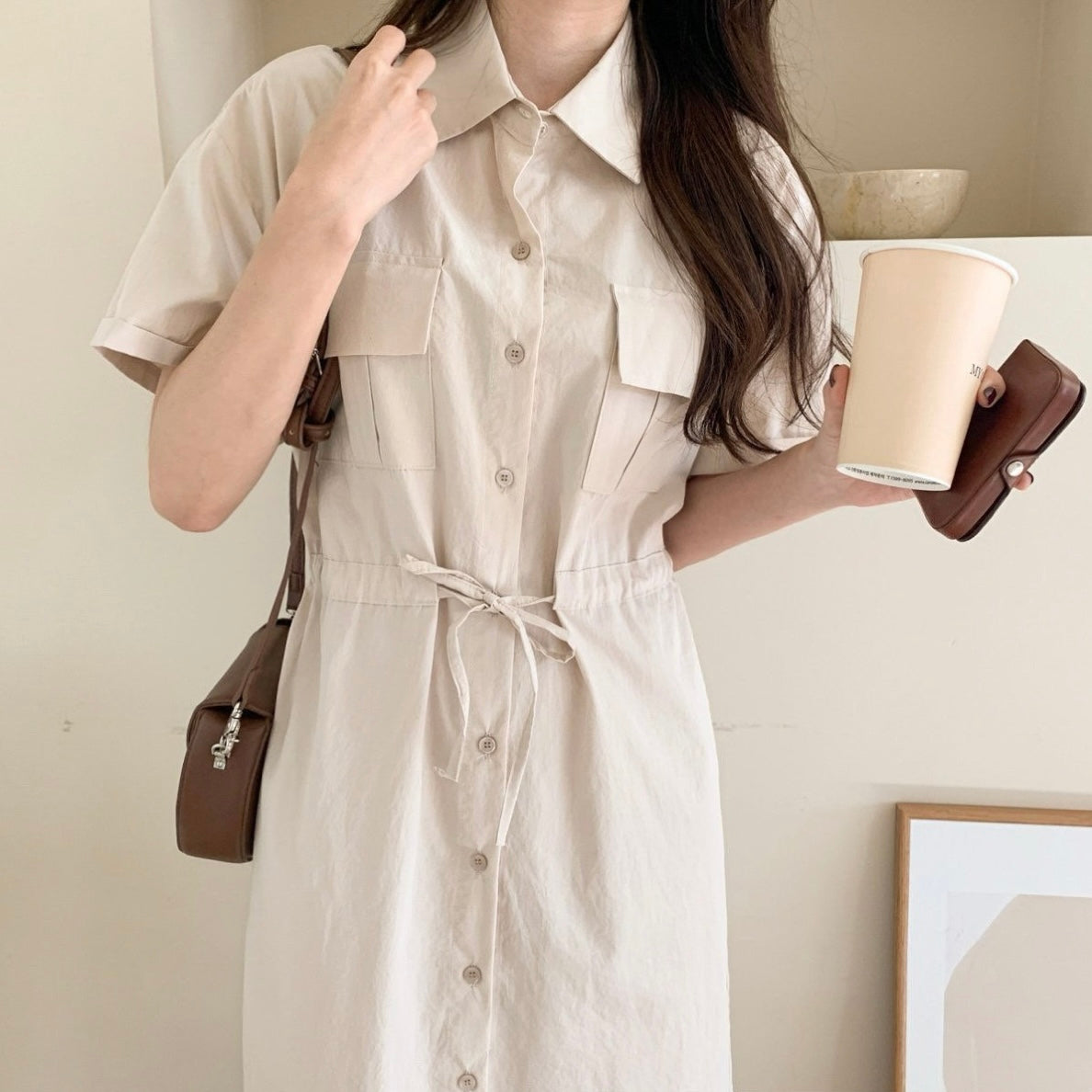 韓國丨純棉雙口袋綁帶OPS