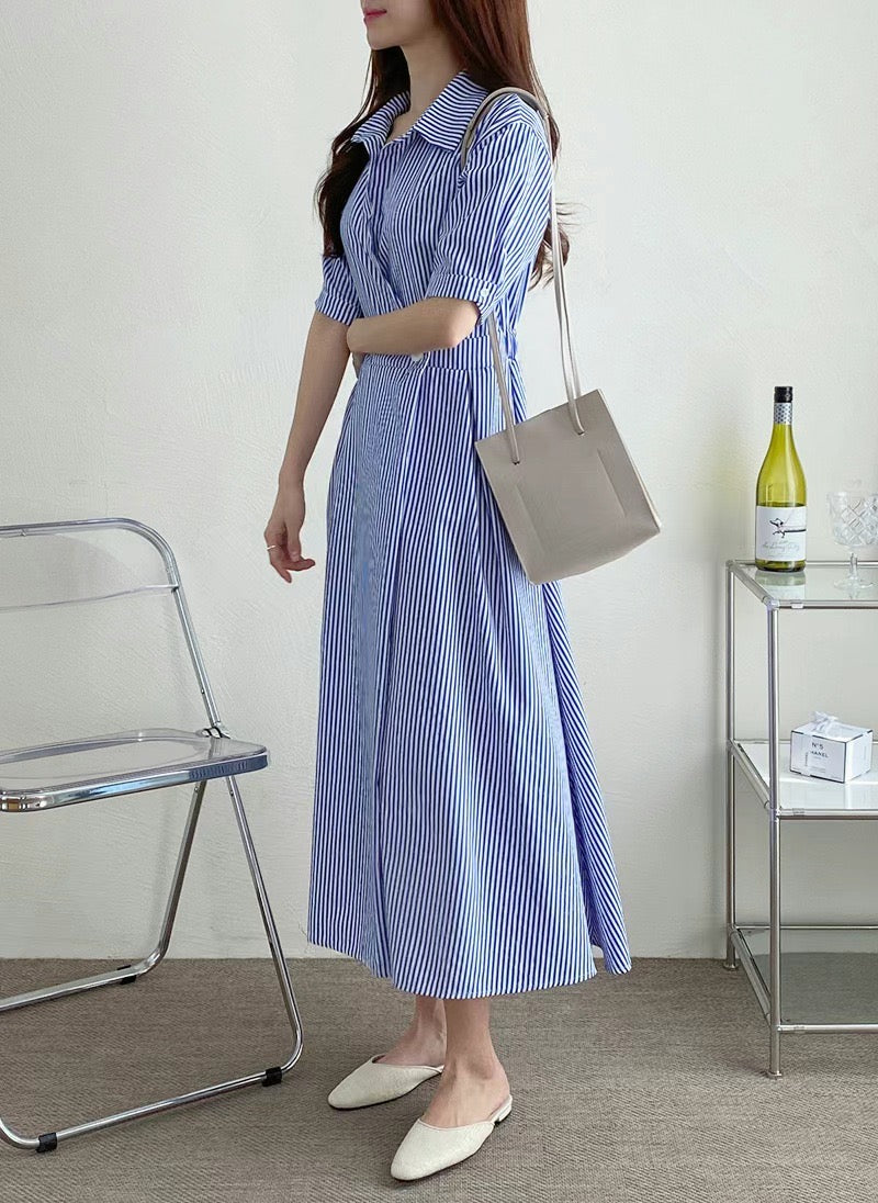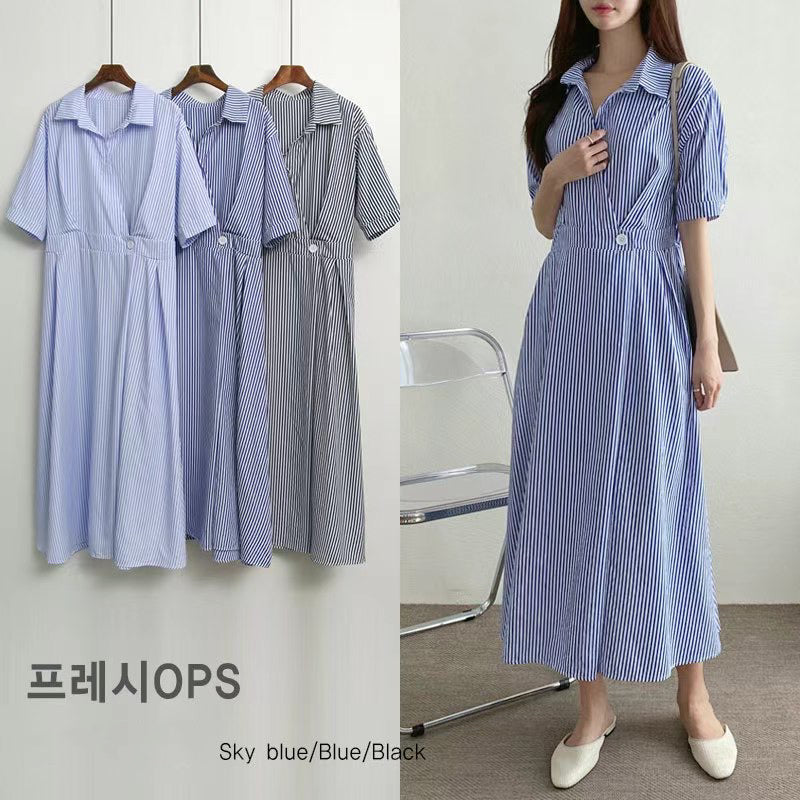 Share Link ♡ 韓國丨翻領直間紋OPS