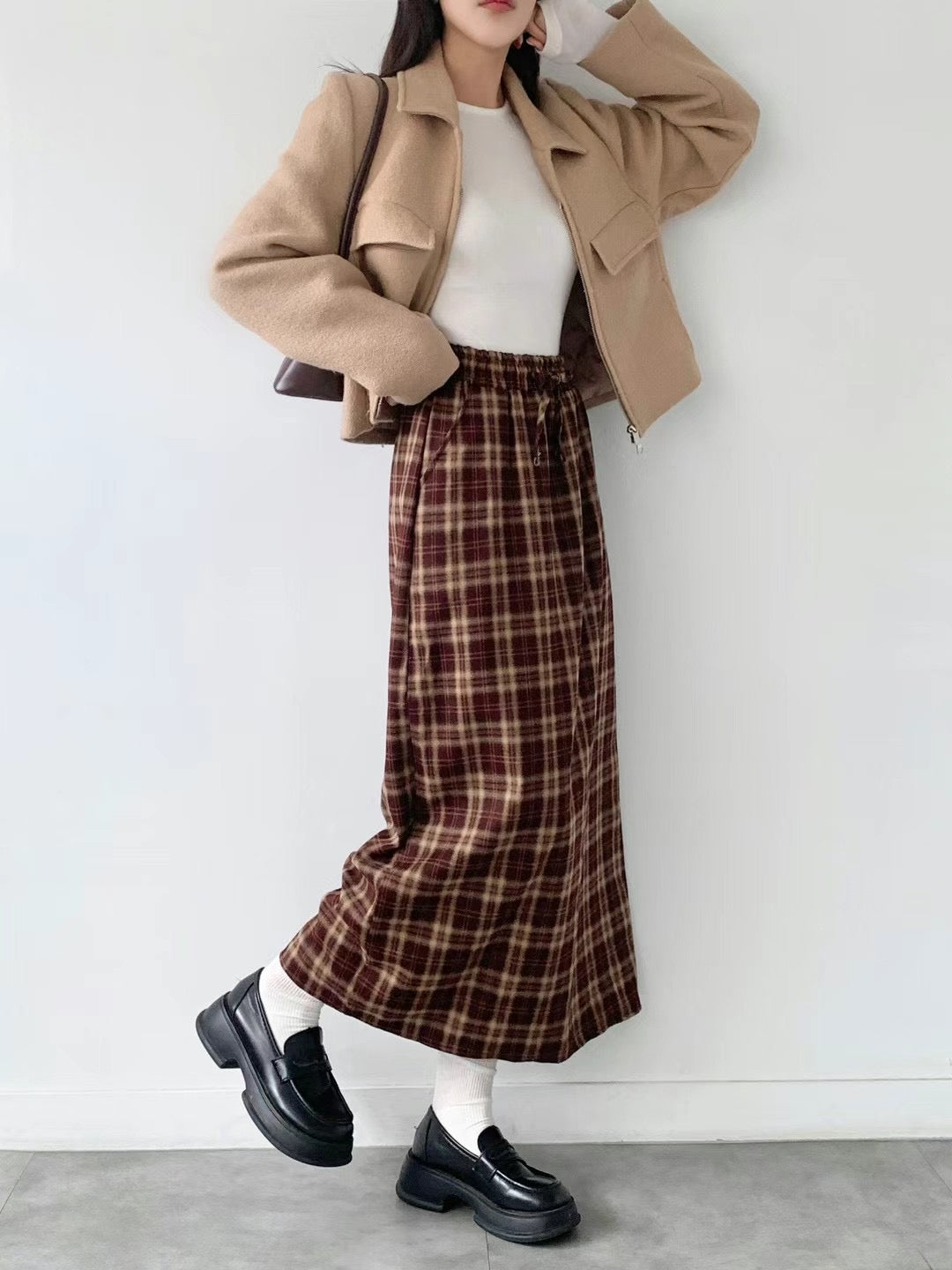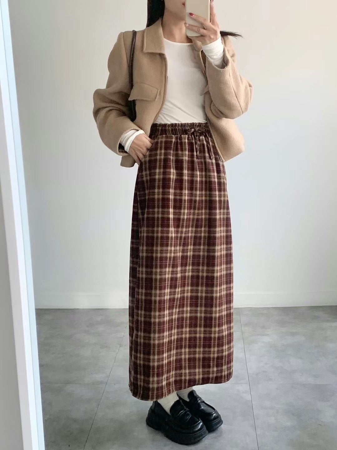 Share Link ♡ 韓國丨全橡筋腰格紋裙