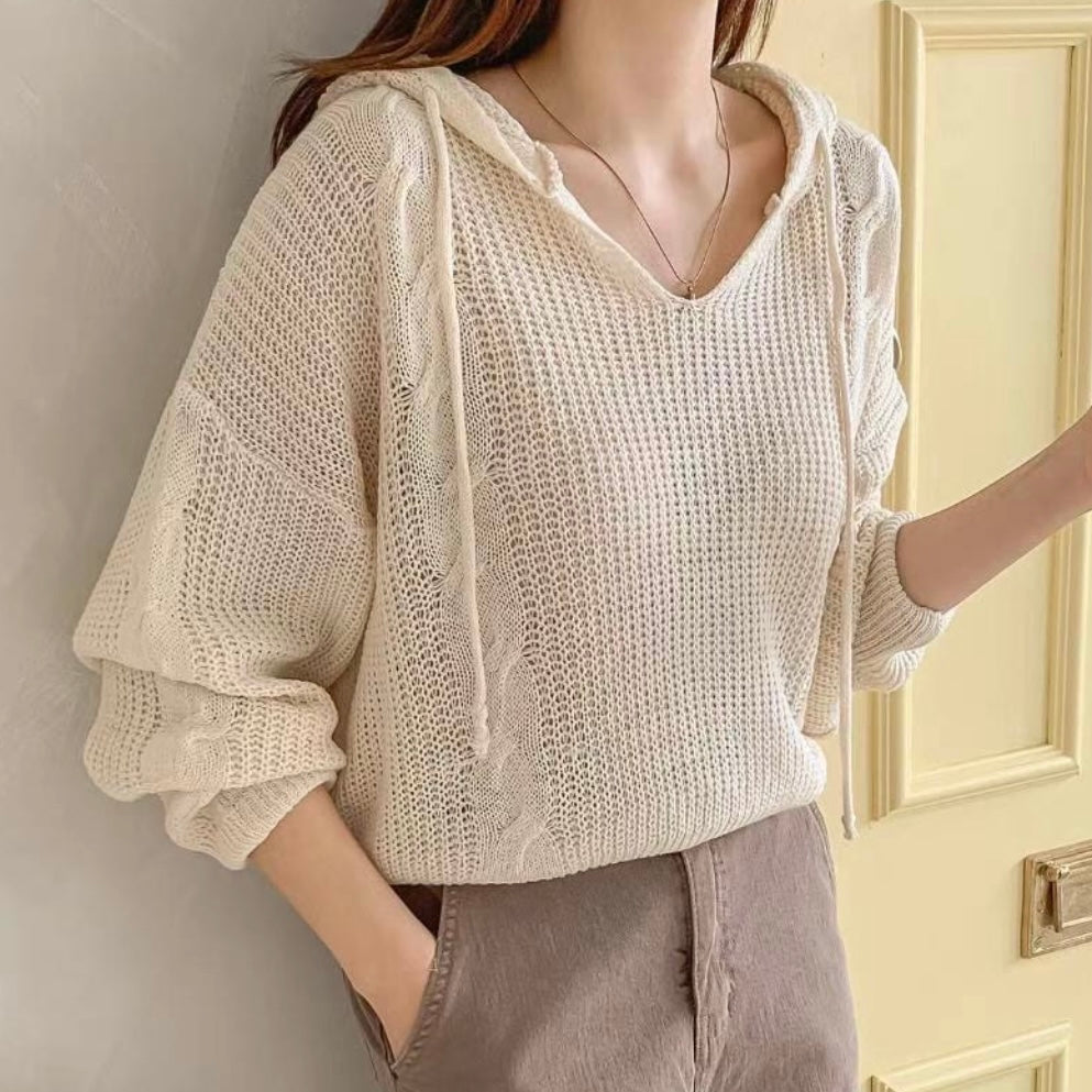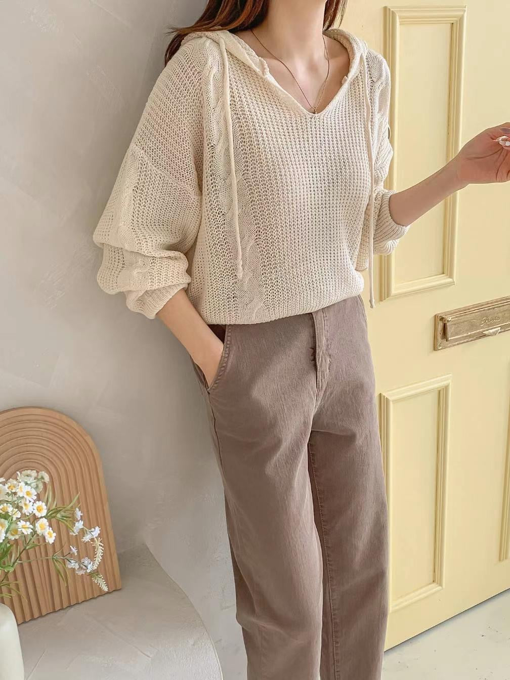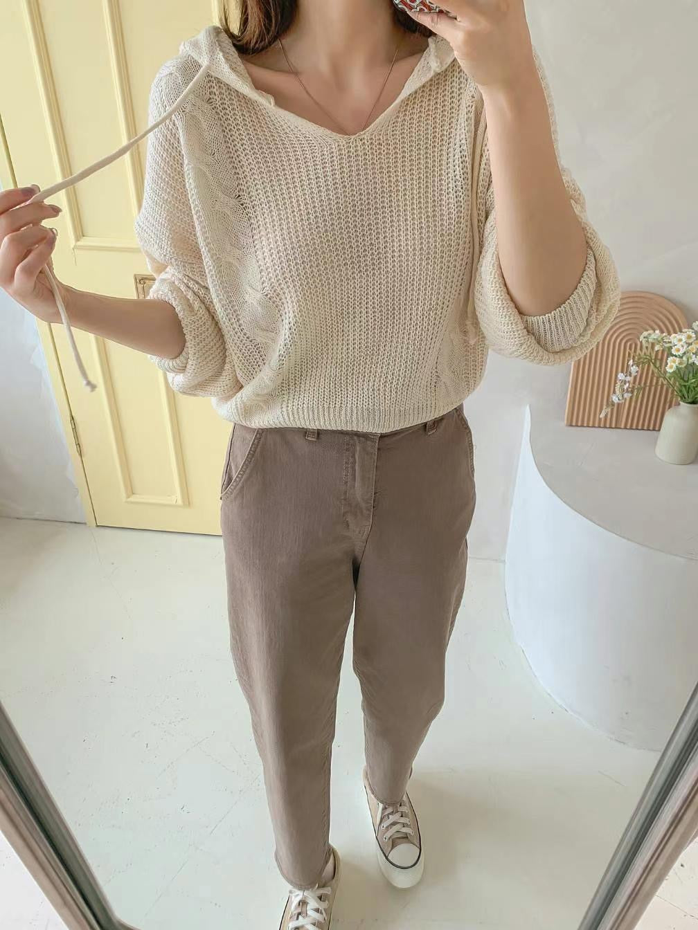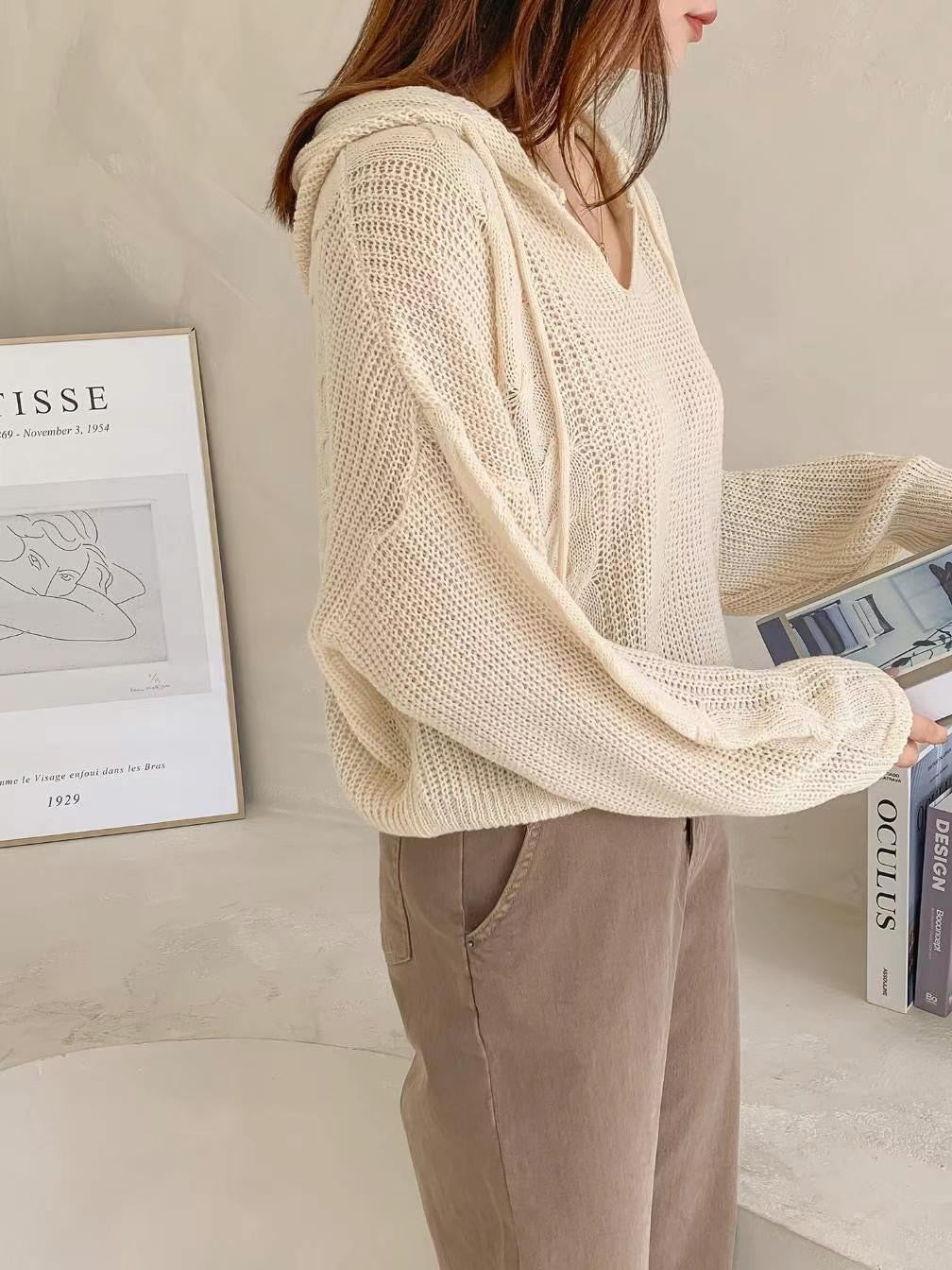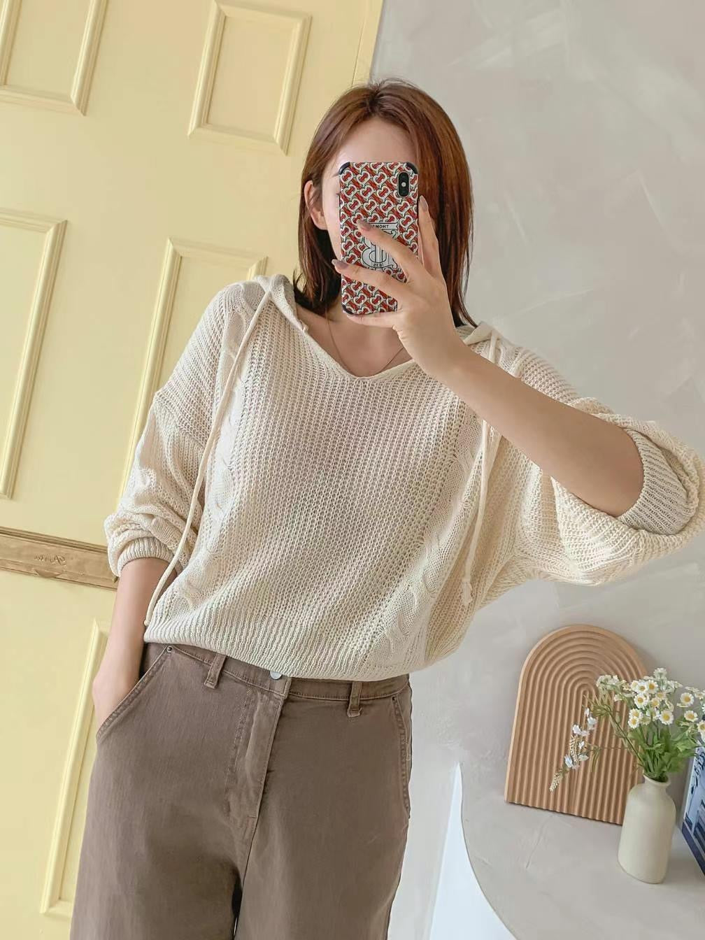 Share Link ♡ 韓國丨抽繩連帽薄針織