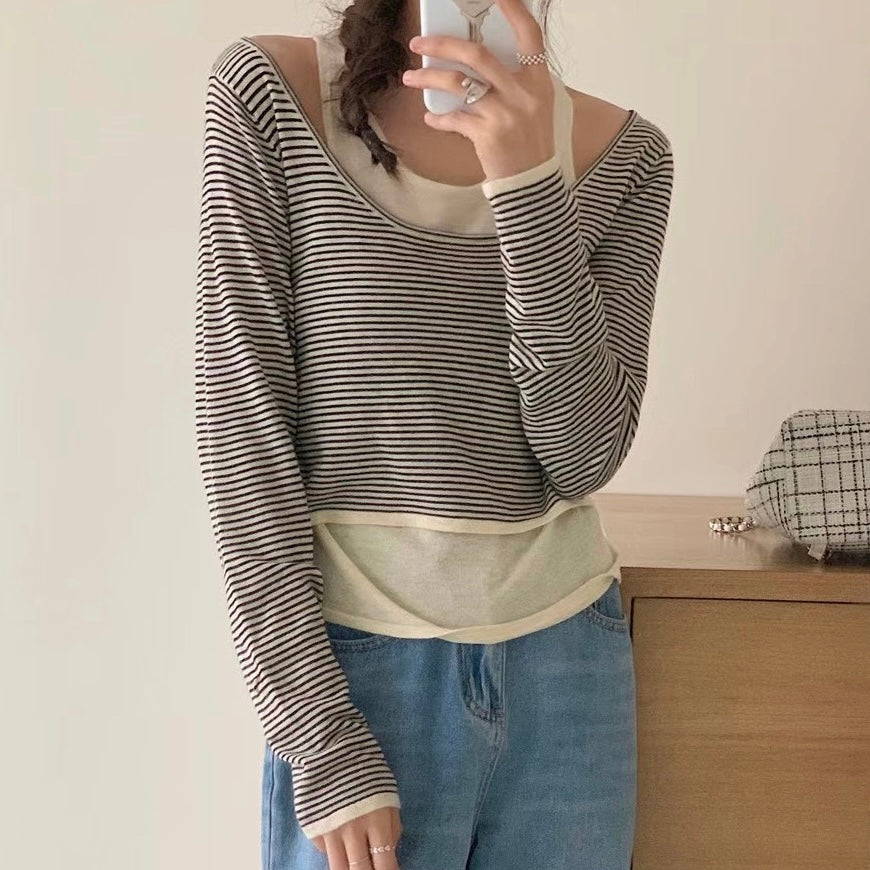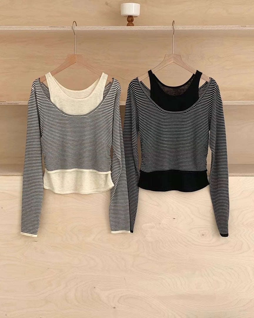 韓國丨間紋長袖背心SET
