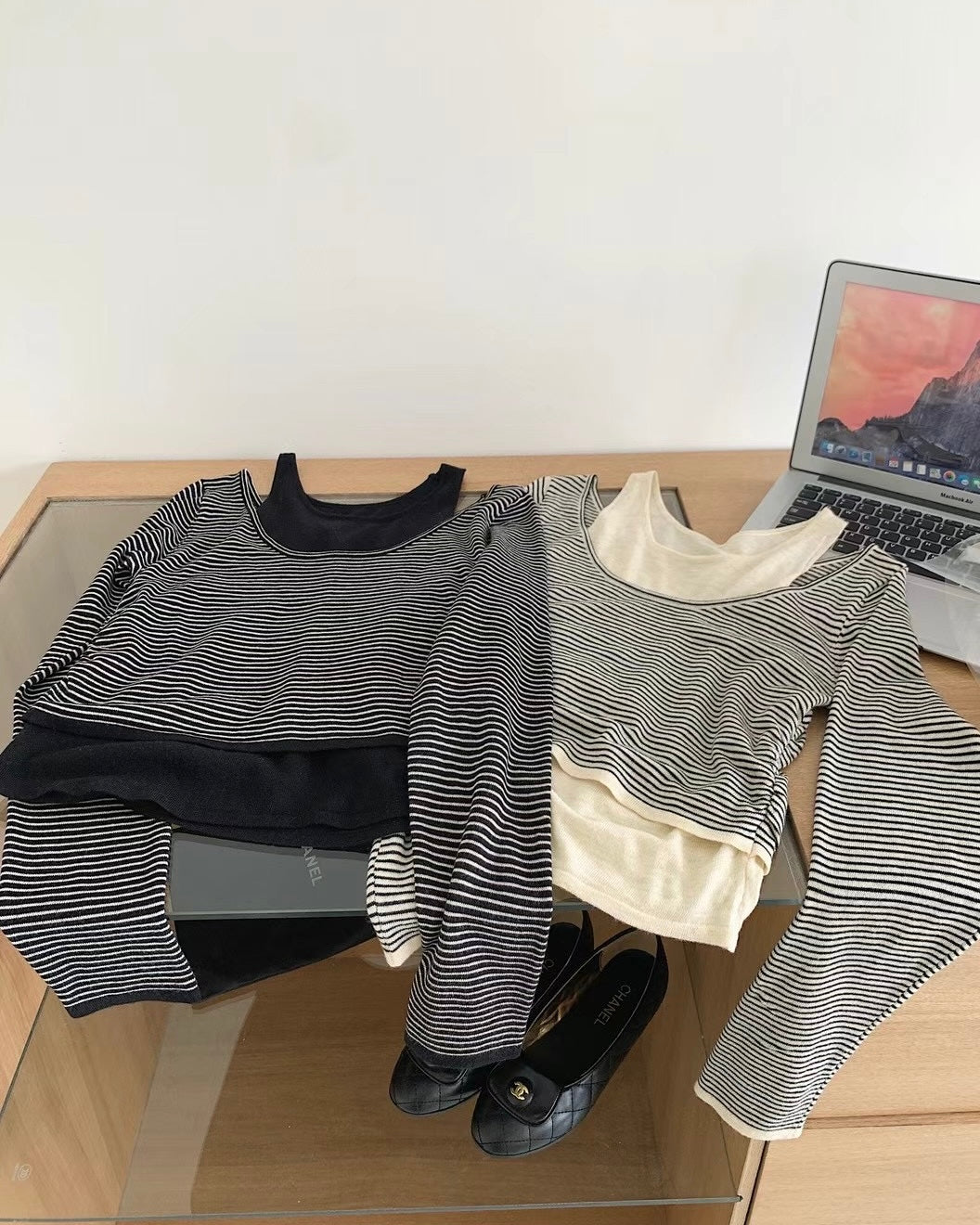 Share Link ♡ 韓國丨間紋長袖背心SET