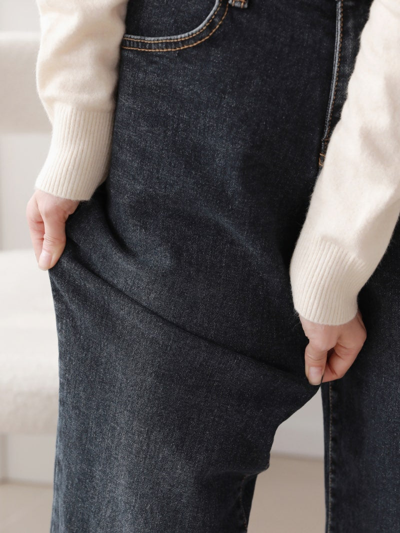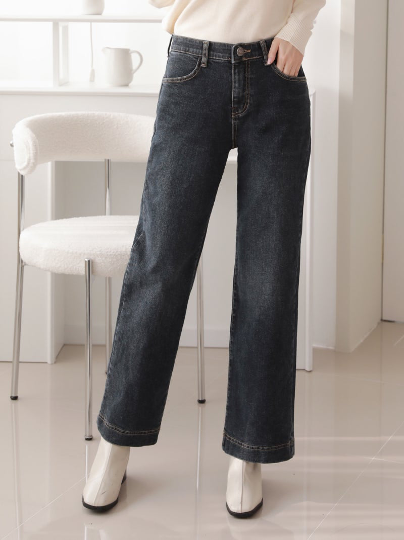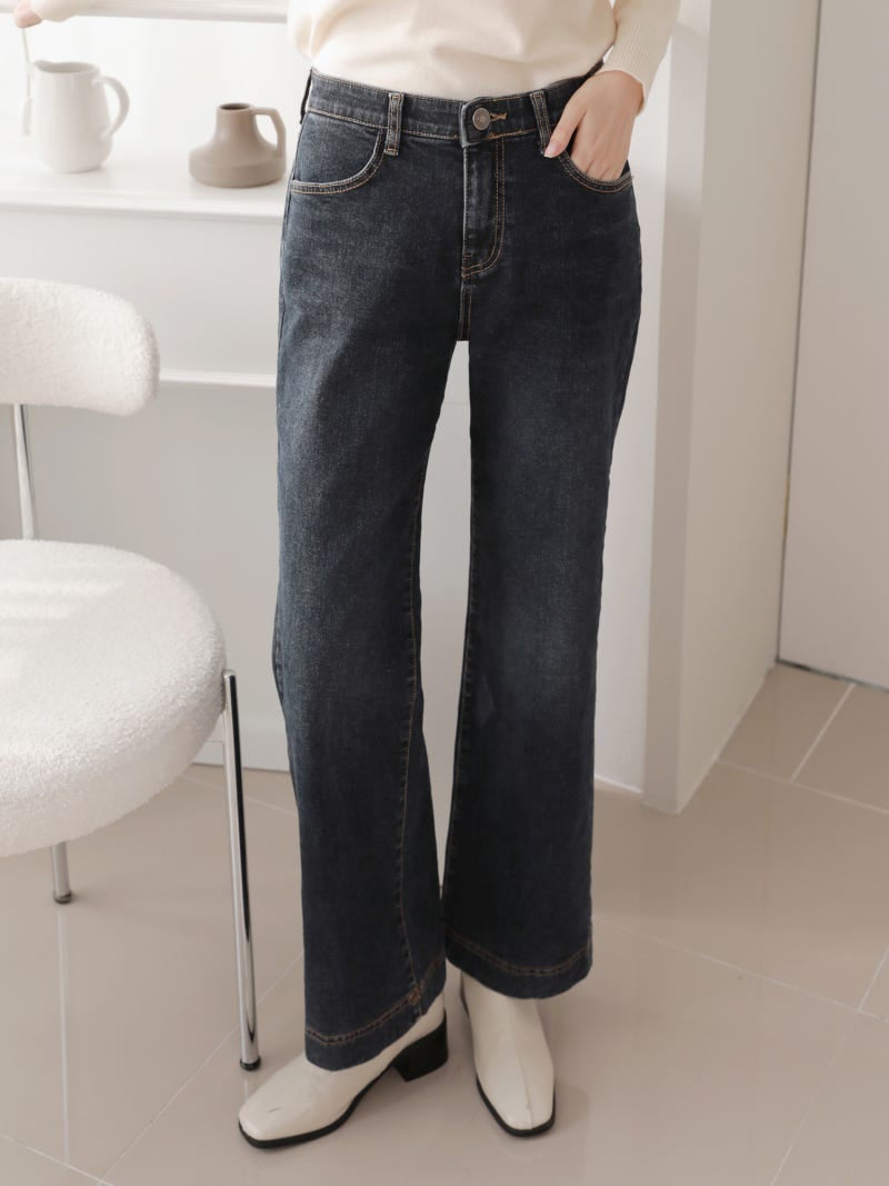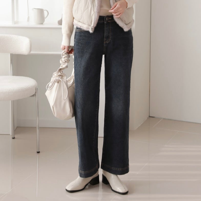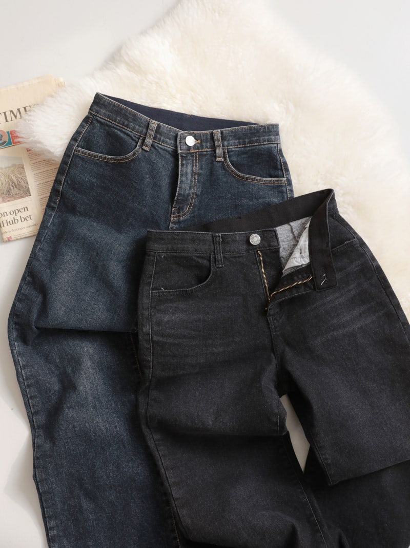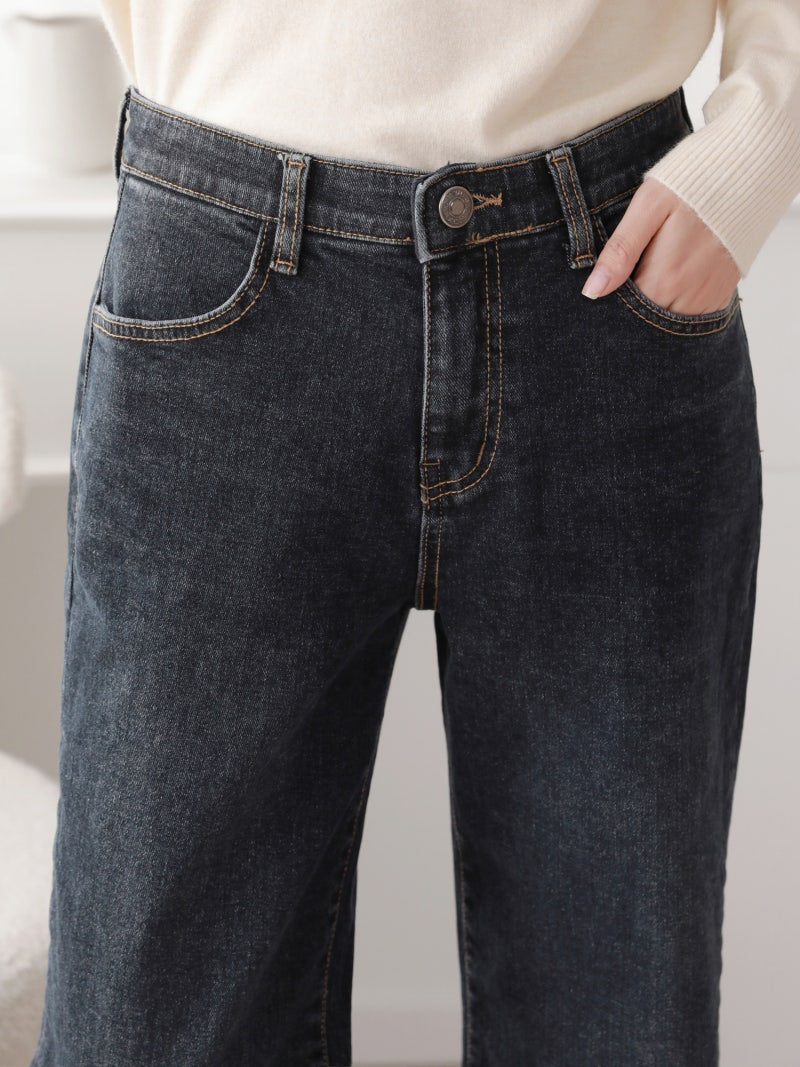 韓國丨內絨半寬牛仔褲