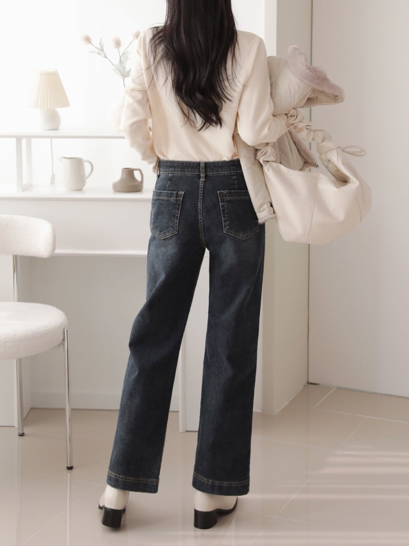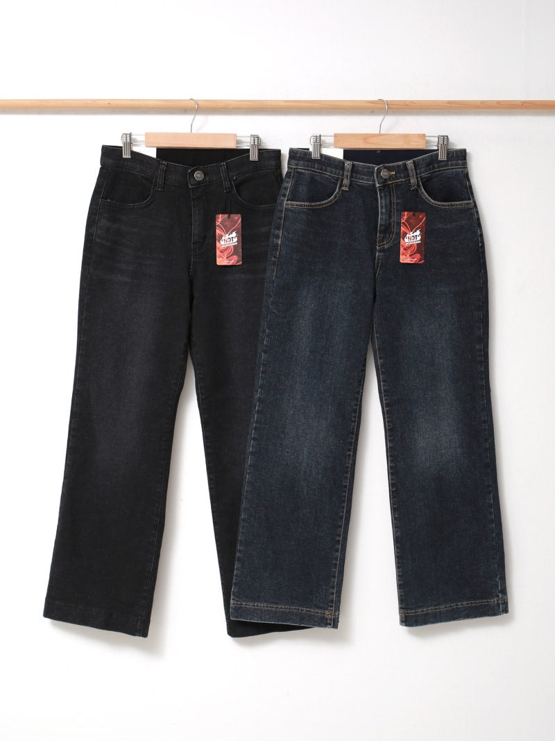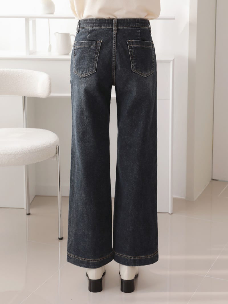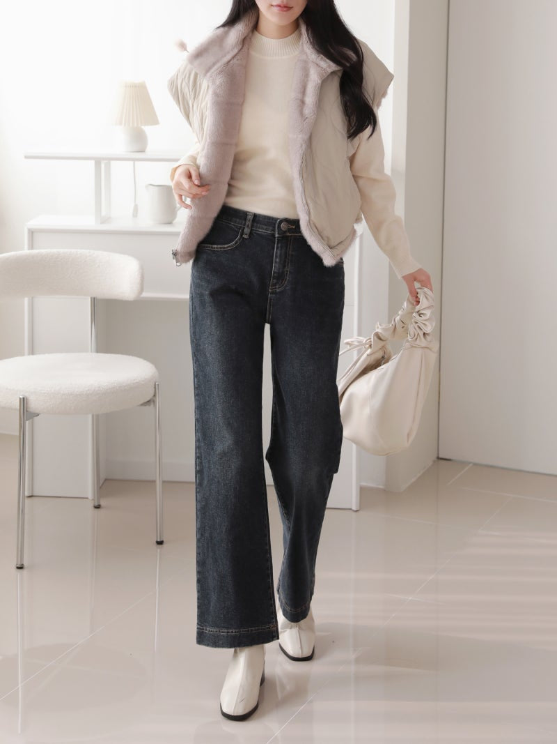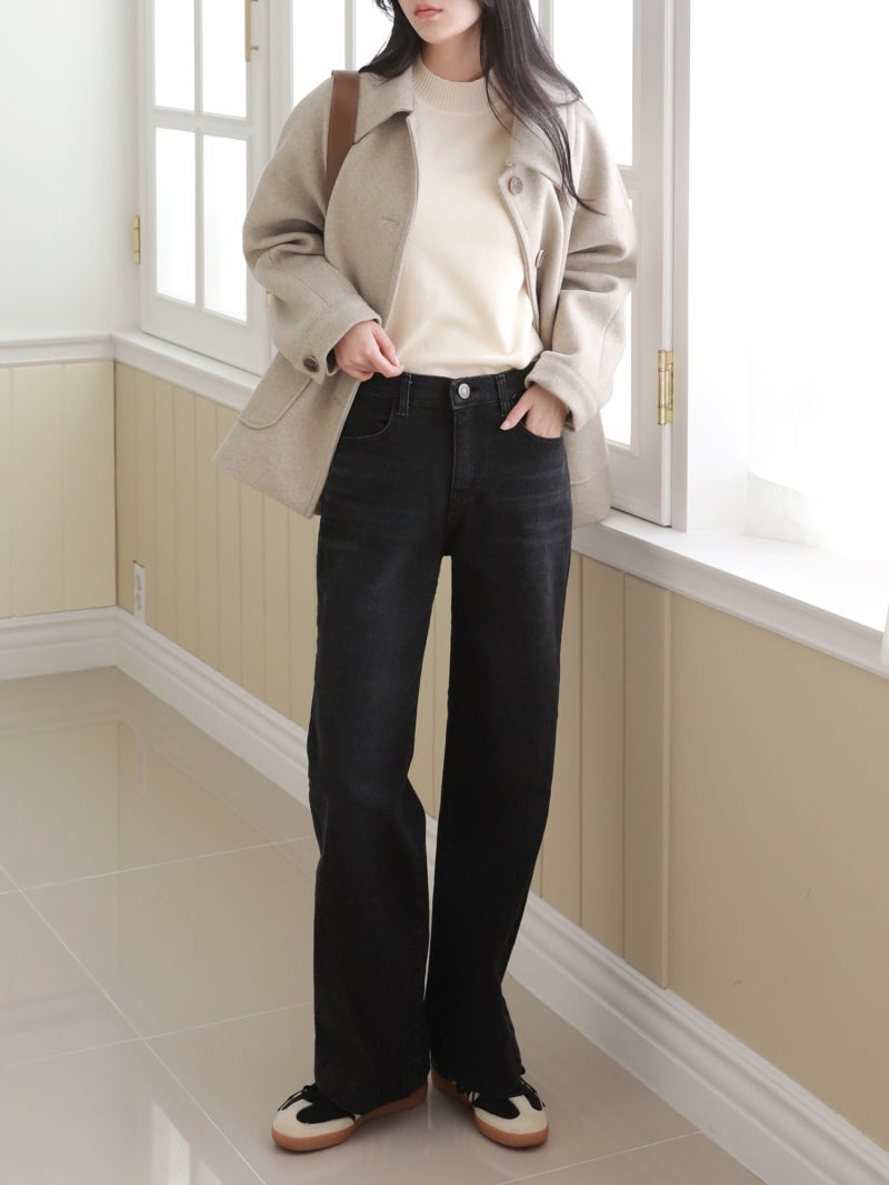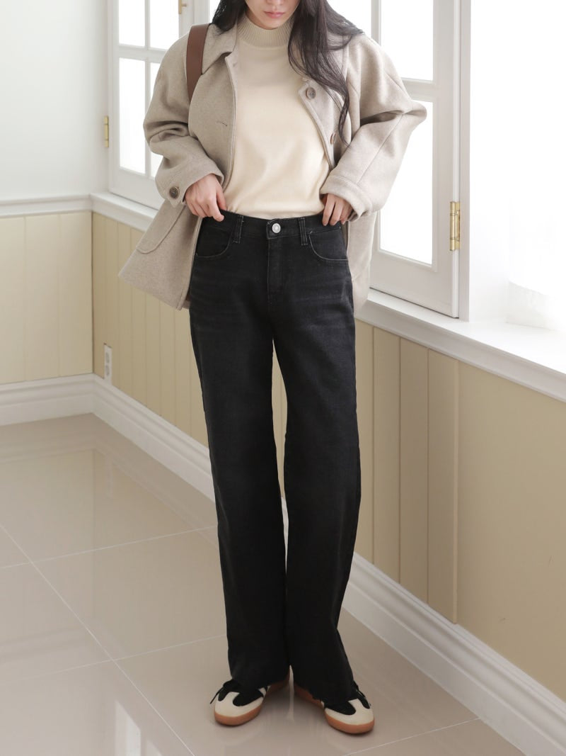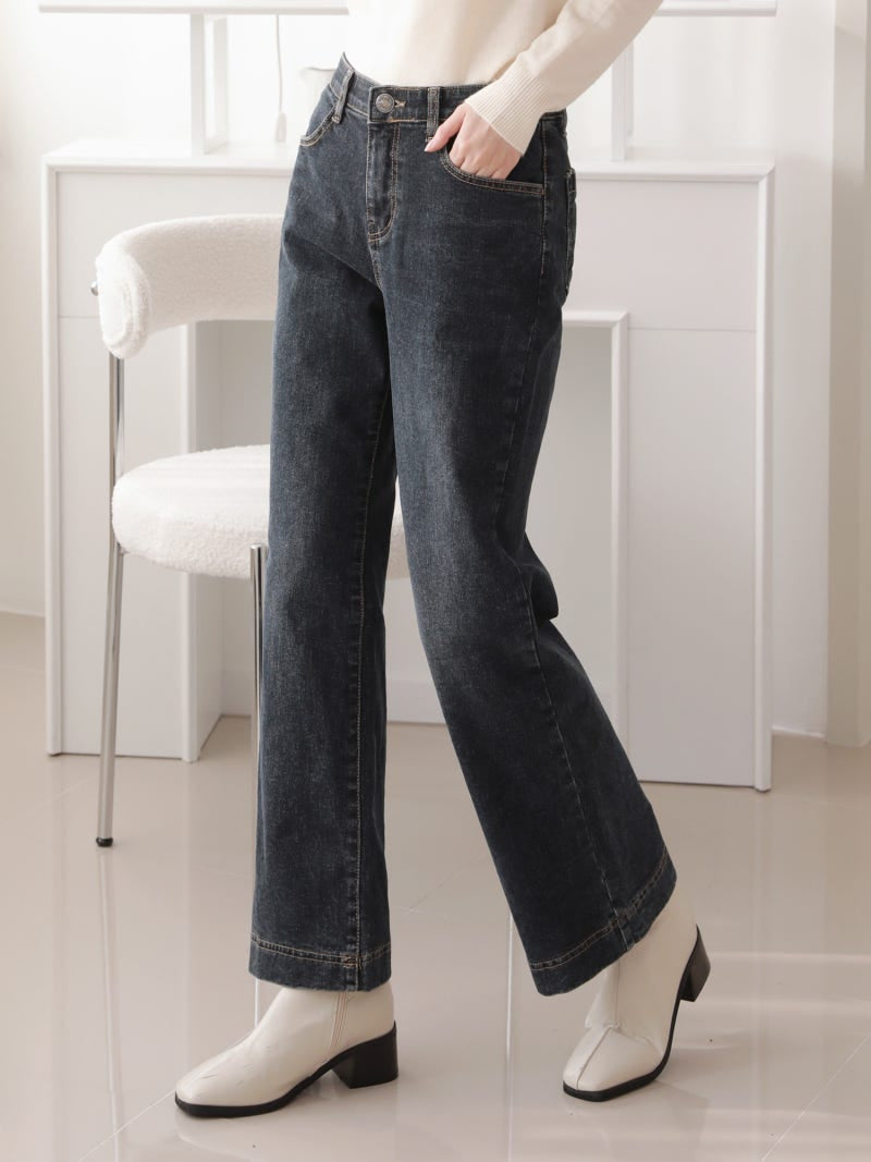 韓國丨內絨半寬牛仔褲