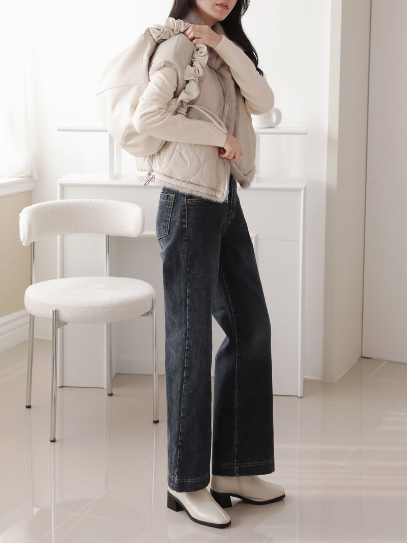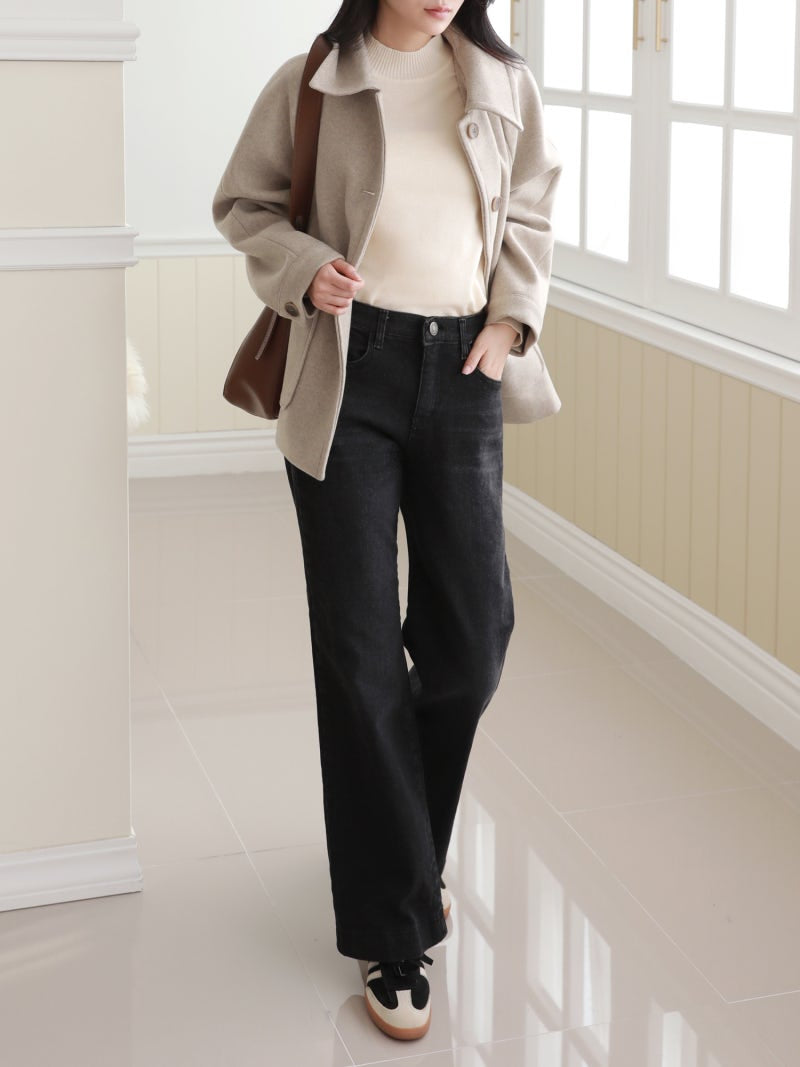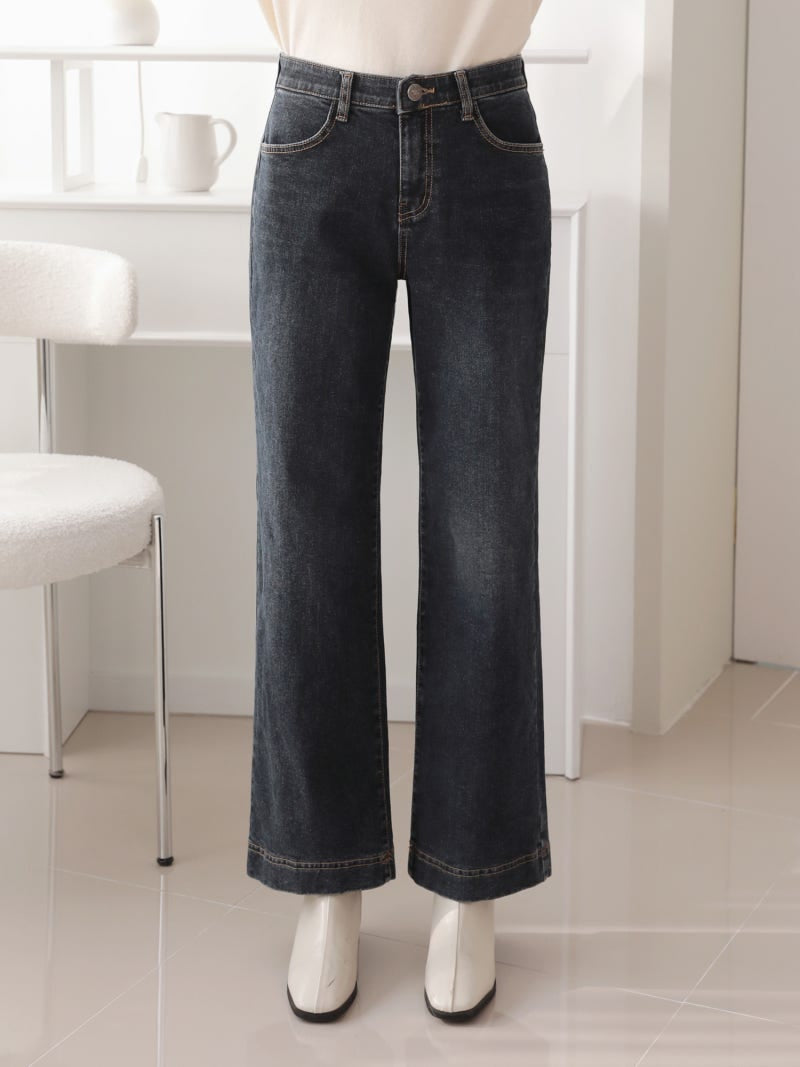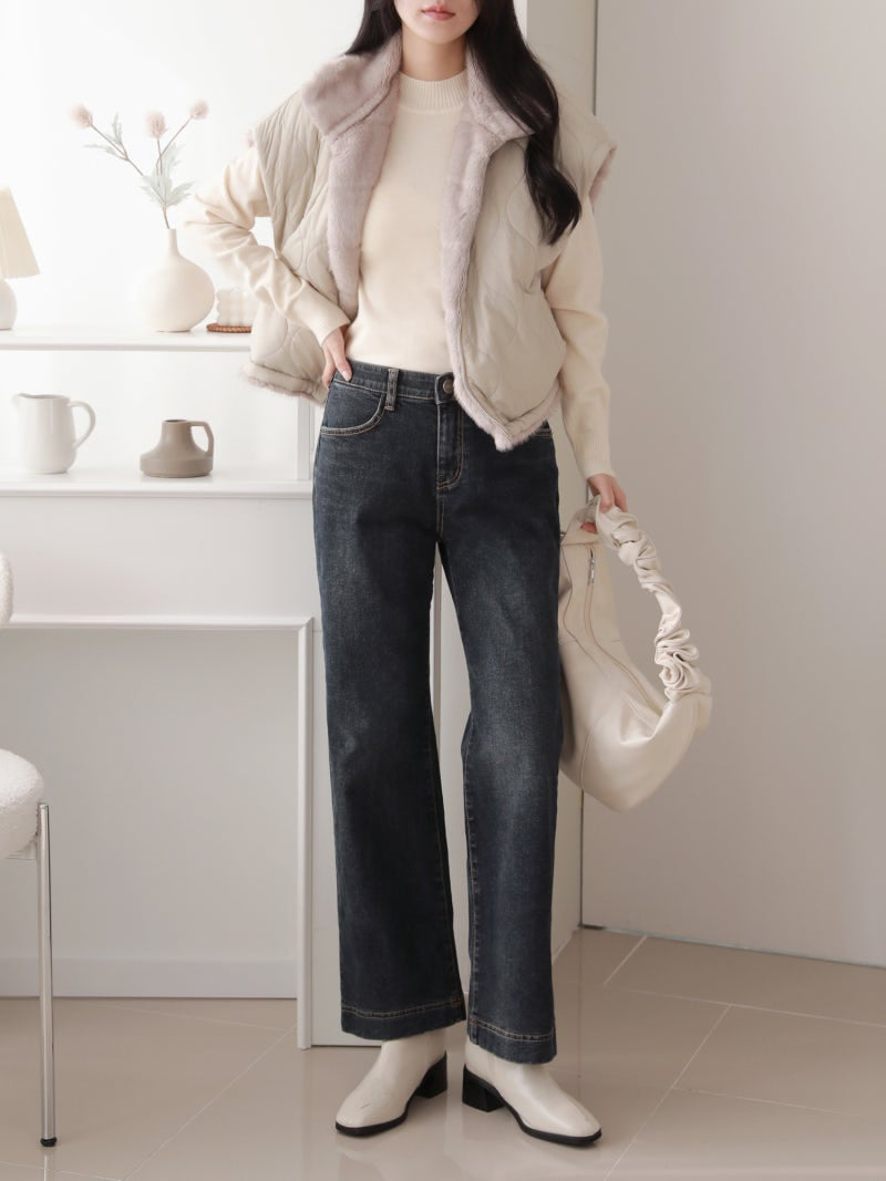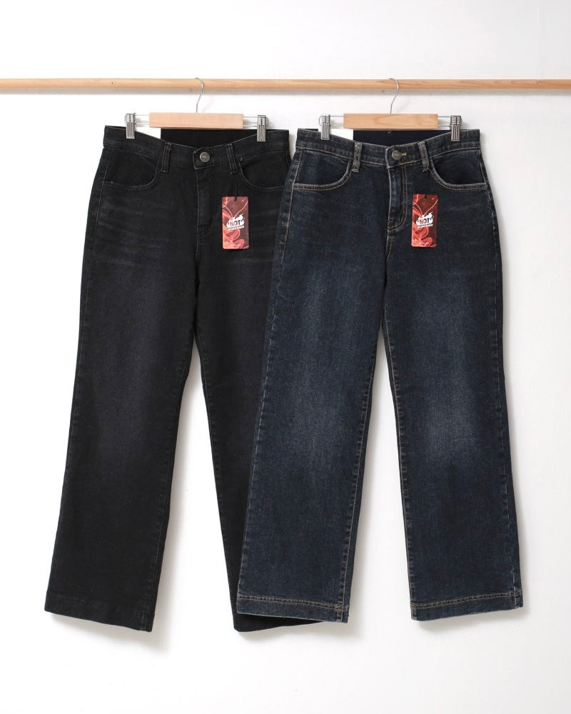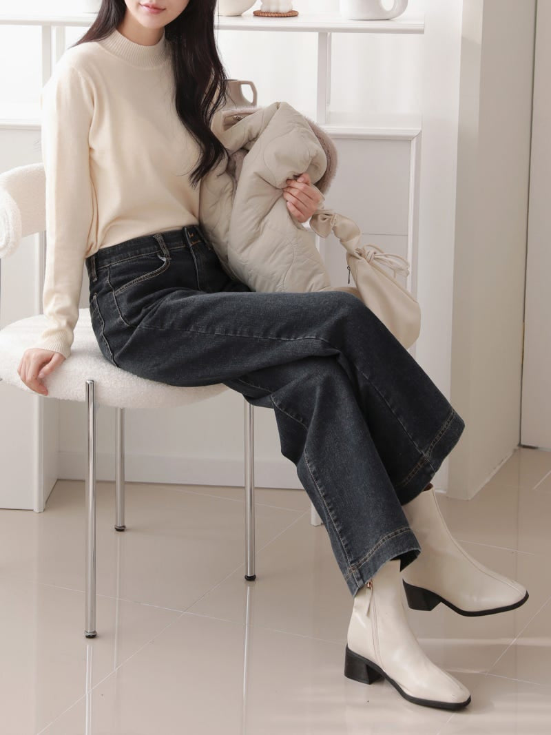 韓國丨內絨半寬牛仔褲