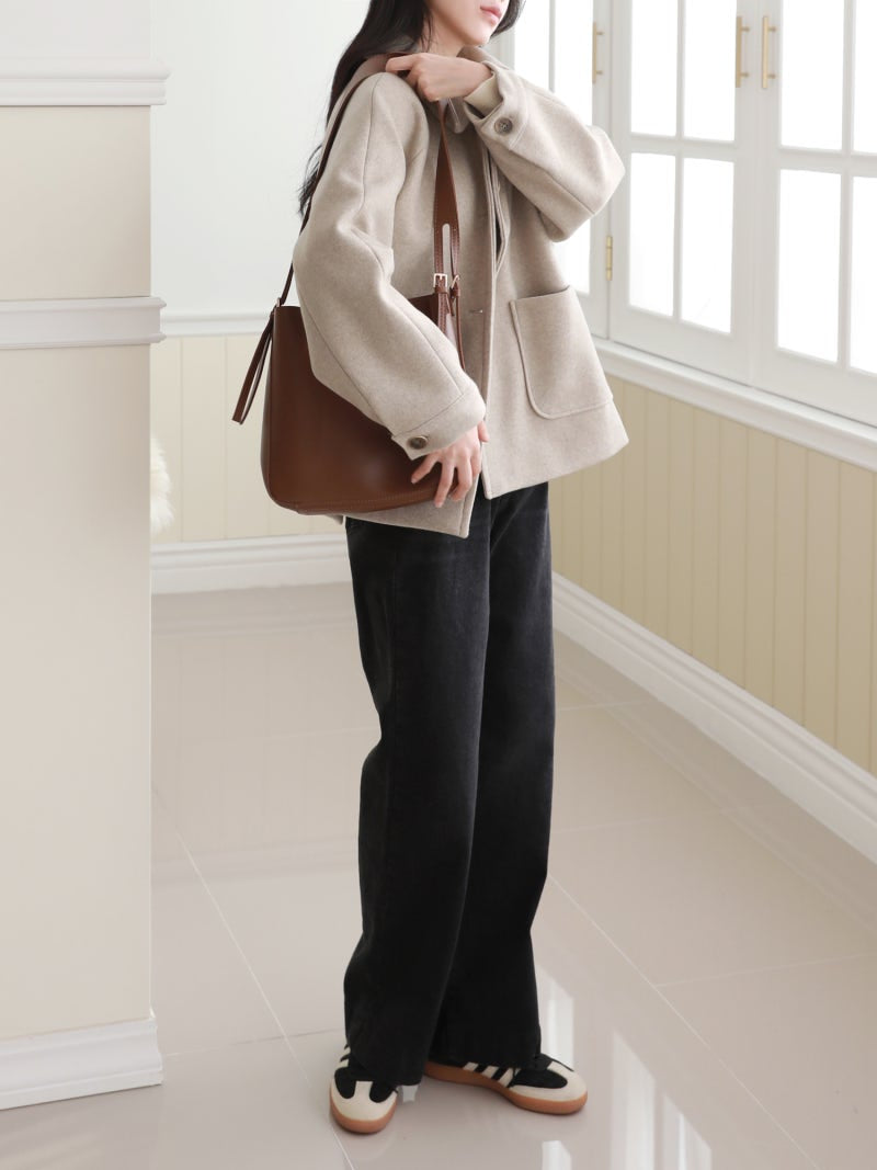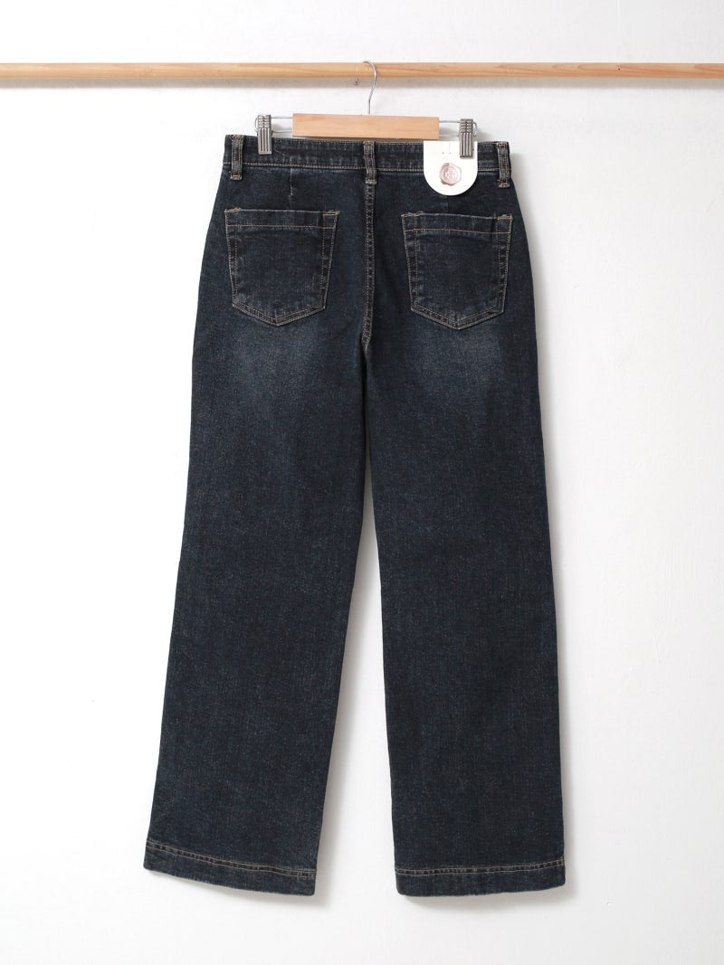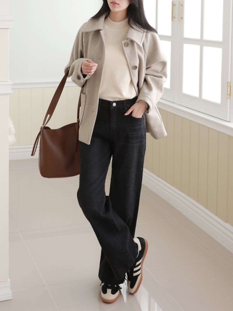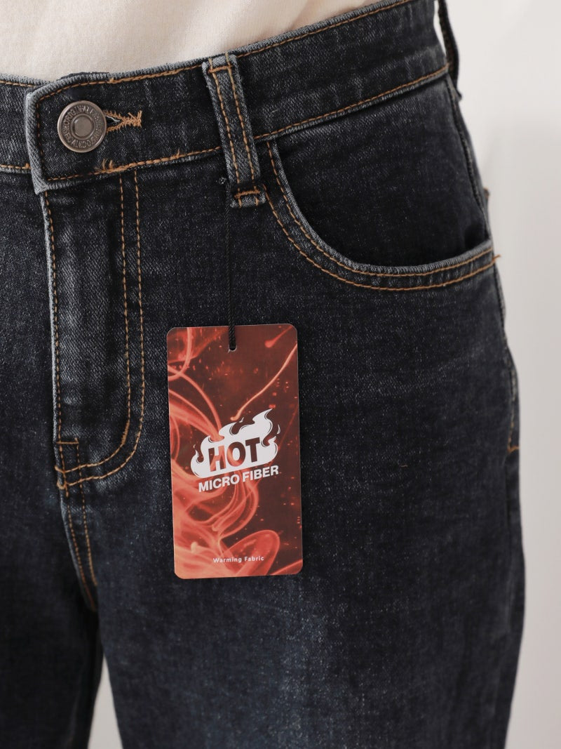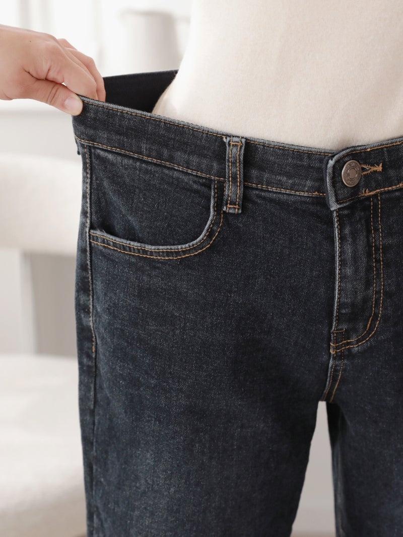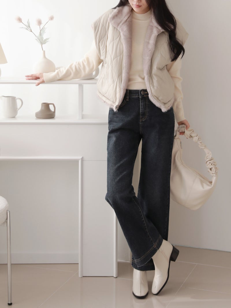 韓國丨內絨半寬牛仔褲